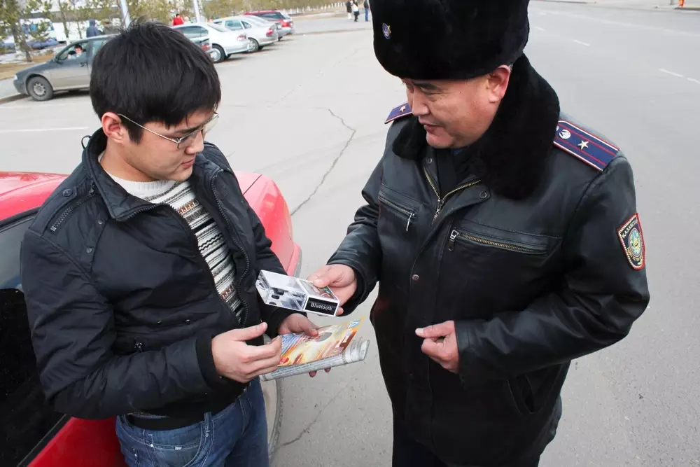 Дорожные полицейские Астаны "освободили руки" водителям. Сегодня, 30 марта, прошла акция "Пешеход", где по этому случаю дорожные полицейские дарили водителям гарнитуры Bluetooth для мобильного телефона, передает корреспондент Tengrinews.kz.