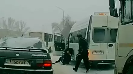 В Уральске на камеру видеорегистратора попала драка водителей общественного транспорта. Что не поделили мужчины, сейчас выясняют сотрудники правоохранительных органов, передает корреспондент Tengrinews.kz.