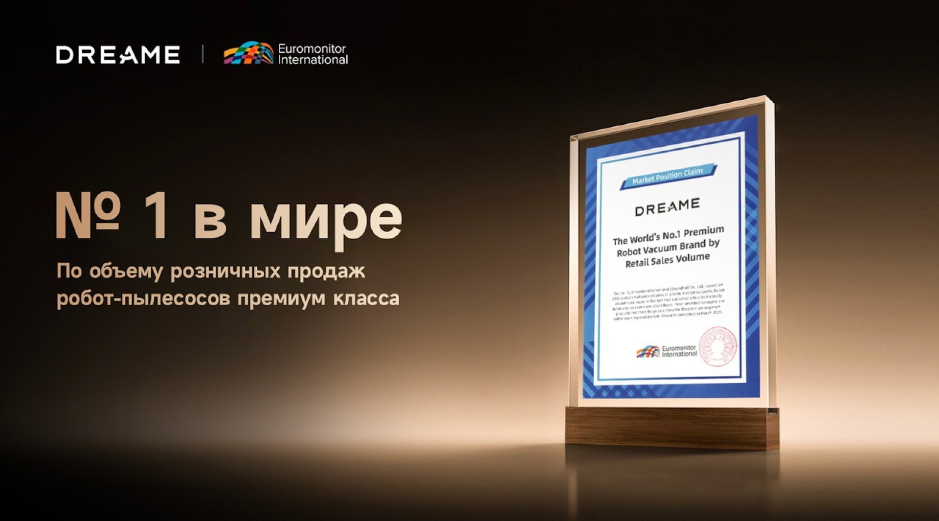 Представители бренда отмечают, что, по данным Euromonitor International за 2025 год, техника Dreame заняла первое место в мире по объему розничных продаж роботов-пылесосов премиум-класса. Бренд лидирует в сегменте устройств стоимостью выше 700 долларов в 30 странах и регионах, а на 18 ключевых рынках его доля превышает 40 процентов.