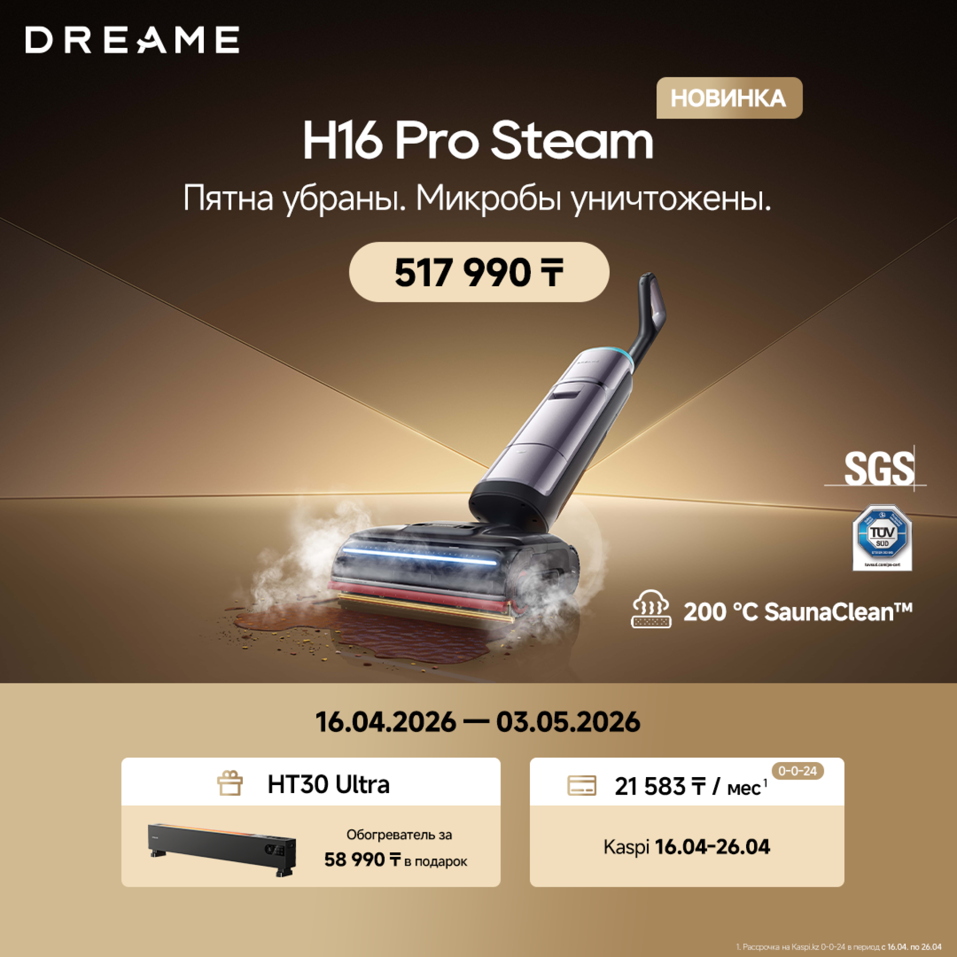- H16 Pro Steam (517 990 тенге) — в подарок обогреватель HT30 Ultra (выгода до 58 990 тенге)