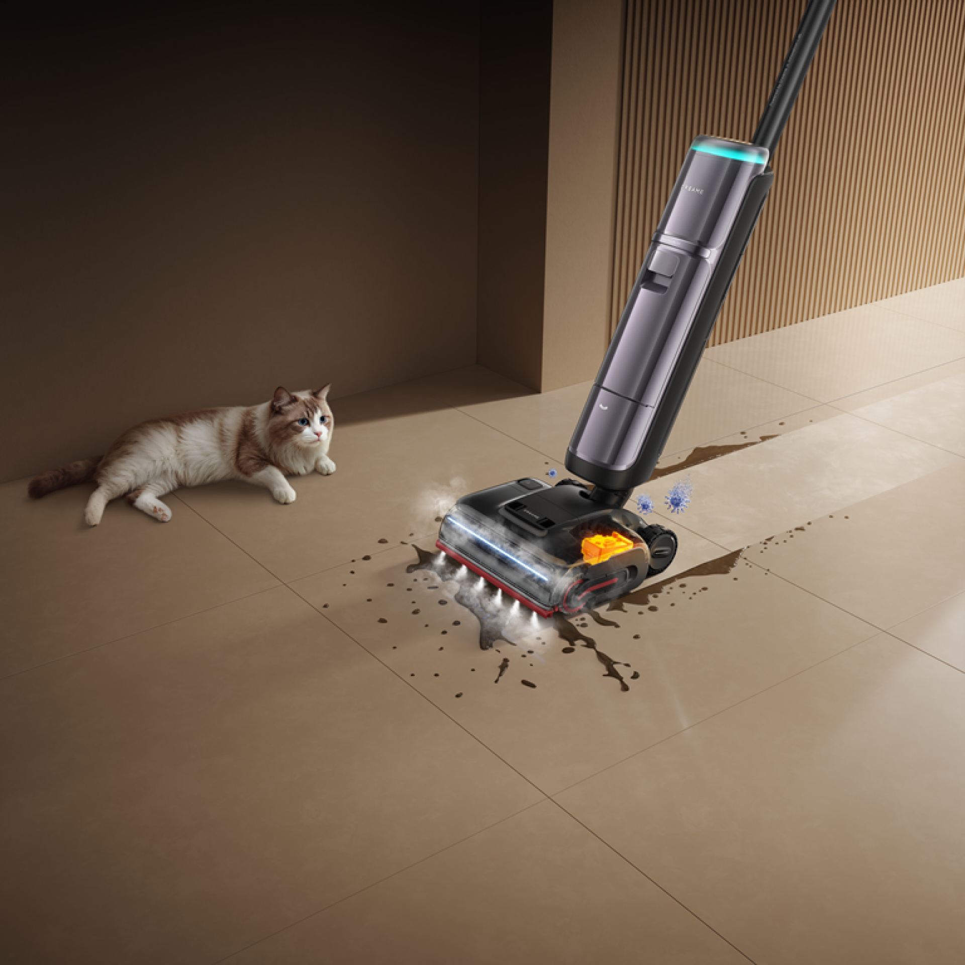 За гигиену и стерилизацию в этой команде отвечает беспроводной вертикальный пылесос для сухой и влажной уборки Dreame H16 Pro Steam. И это уже ответ на другой важный тренд: современному пользователю мало, чтобы дома было просто визуально чисто. Все чаще важен именно уровень глубокой очистки, особенно если речь идет о кухне, детских пространствах или доме, где есть питомцы.