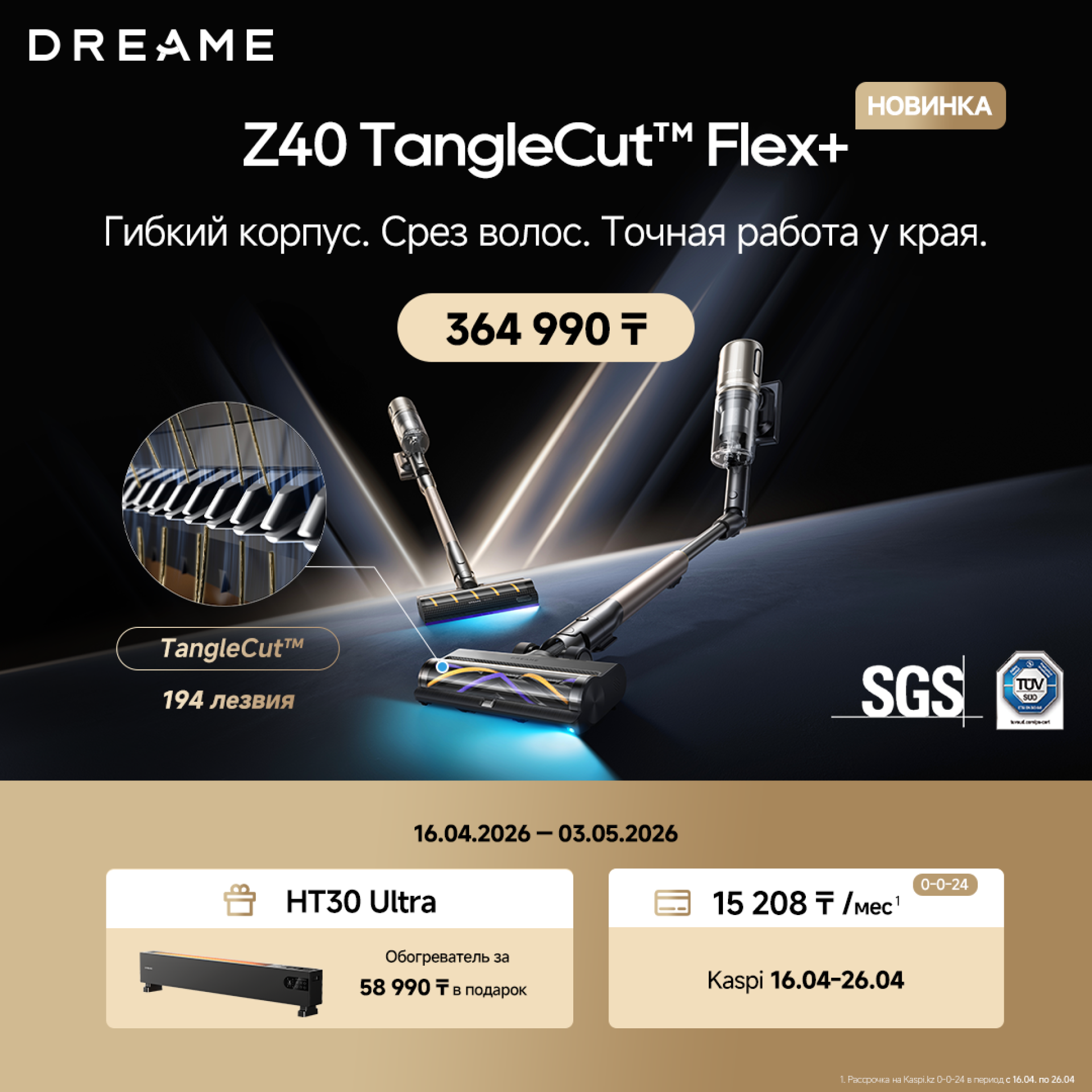 - Z40 TangleCut™️ Flex+ (364 990 тенге) — в подарок обогреватель HT30 Ultra (выгода до 58 990 тенге)