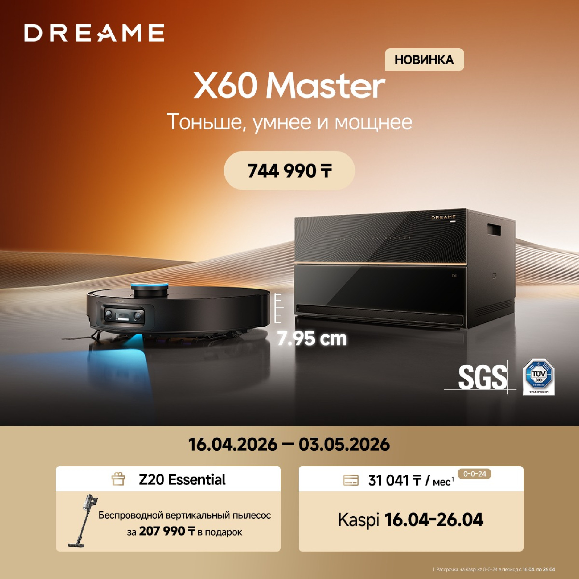 - X60 Master (744 990 тенге) — в подарок вертикальный пылесос Z20 Essential (выгода до 207 990 тенге)