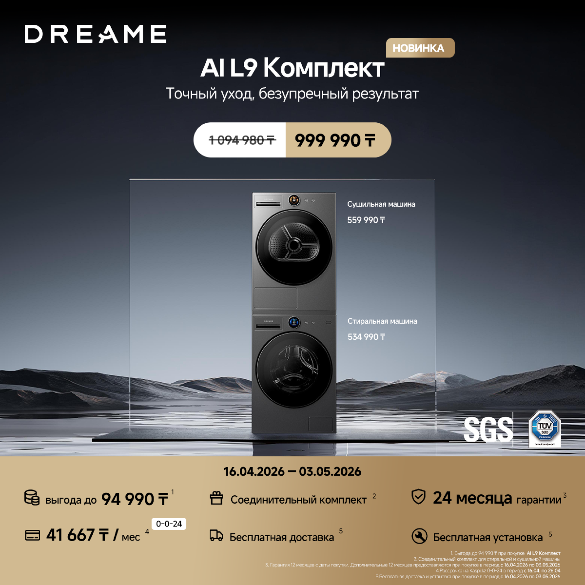 В период с 16 апреля по 3 мая 2026 года при покупке новых моделей Dreame действуют специальные предложения: