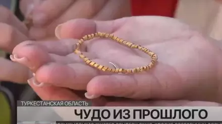 Древние золотые серьги нашли археологи в Туркестанской области Кадр из видео "Хабар 24"