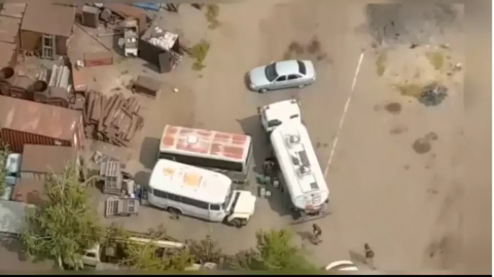 На предоставленных полицией кадрах видно, как бензовоз въезжает на безлюдную территорию, где затем подозреваемые начинают сливать топливо в приготовленные канистры. В этот момент происходит их задержание.