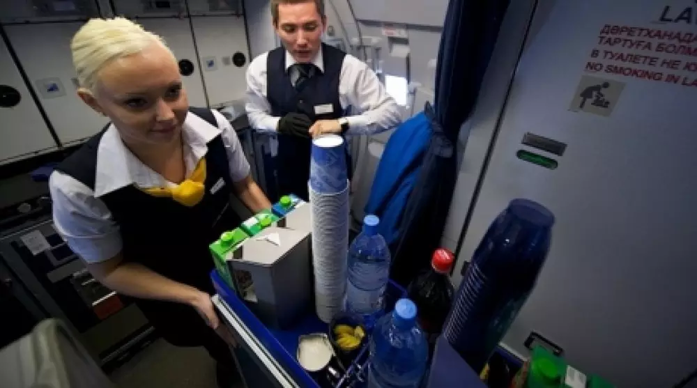 "Эйр Астана" рассматривает возможность включения в бортовое меню казахских национальных блюд Стюарды "Эйр Астана" за работой. Фото ©<a href="http://www.voxpopuli.kz" target="_blank">voxpopuli.kz</a>