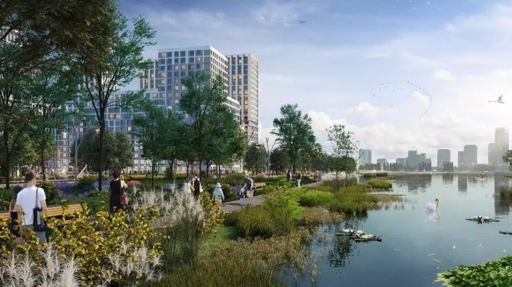 Отмечается, что также появится прогулочная инфраструктура: террасная набережная на прибрежных водно-болотных угодьях, будут сохранены и созданы условия для экоклимата с флорой и фауной.