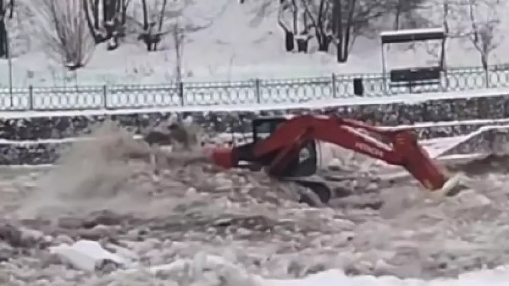 Потепление в Алматы вызвало таяние снега и льда по руслу реки Есентай ниже улицы Оспанова. Из-за этого примерно в 13:15 часов произошел локальный ледово-водный паводок, на пути которого оказался экскаватор. Паводок остановился в Есентайском отстойном бассейне. Никто не пострадал, передает Tengrinews.kz.