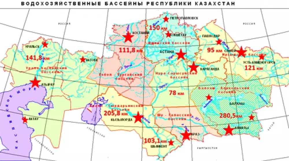 По плану Елеусизова, соответственно, появятся бассейновые инспекции в восьми городах - Атырау, Костанае, Кызылорде, Таразе, Караганде, Астане, Семее, Алматы. Расстояние от города до проверяемого водного объекта составит примерно 140 километров. При этом пока эколог пока не может назвать административные центры каждого региона.