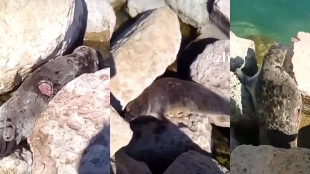 В социальных сетях пользователи обсуждают видео с раненым тюленем на берегу Каспийского моря, передает корреспондент Tengrinews.kz.