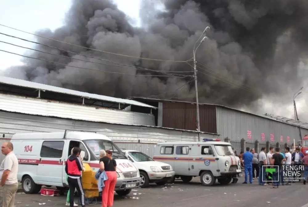 Есимов: За пострадавшими при пожаре на рынке Алматы стоят "заинтересованные" лица Пожар на рынке в Алматы. Фото ©Роза Есенкулова
