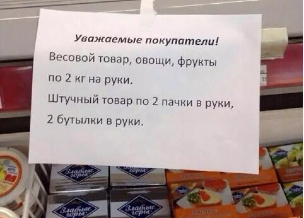 В социальных сетях появились фотографии с объявлениями о том, что "развесные продукты отпускаются только по два килограмма в одни руки". "Здесь хотелось бы сказать, что многие магазины сегодня начали срочно закрываться, некоторые стали менять ценники, особенно на импортные товары. Но у нас оперативные штабы существуют в каждом районе, поэтому мы дали поручение, чтобы они разобрались сразу же на предмет наличия продовольственных товаров, какие есть запасы с тем, чтобы торговля шла нормально. Поскольку некоторые уже вывесили объявление "только по два килограмма развесные товары, штучные по две бутылки", мы контролируем. Очень большая работа. Сейчас мы будем собираться, обсуждать", - подчеркнул Есимов.