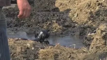 "Собака в битум провалилась, не могла вылезти. Там еще шкуры, видать, несколько их провалилось, сдыхают", - рассказывают местные жители.