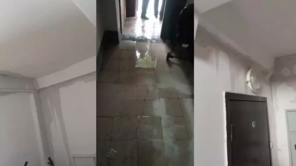В бывшем военном городе Эмба Актюбинской области прошел дождь, после которого затопило пятиэтажный дом. Люди отправили видео корреспонденту Tengrinews.kz, утверждая, что такое происходит с первых дней, как им предоставили это жилье.