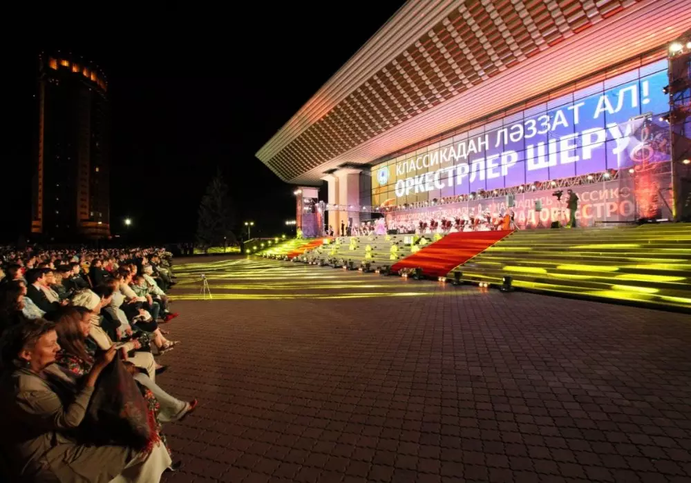 На сцене выступят Казахский Государственный академический оркестр народных инструментов имени Курмангазы, академический фольклорно-этнографический оркестр "Отырар сазы" имени Нургисы Тлендиева, эстрадно-симфонический оркестр акима города Алматы и Государственный духовой оркестр Республики Казахстан.