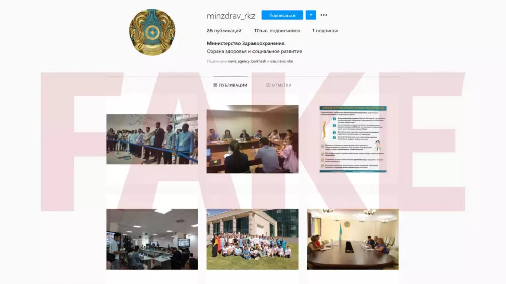 "Страница @minzdrav_rkz не является страницей, принадлежащей Министерству здравоохранения РК. Данный аккаунт подписан только на одного пользователя - @doctor_gereeva_, поэтому можно предположить, что создателем аккаунта является этот человек", - говорится в сообщении.