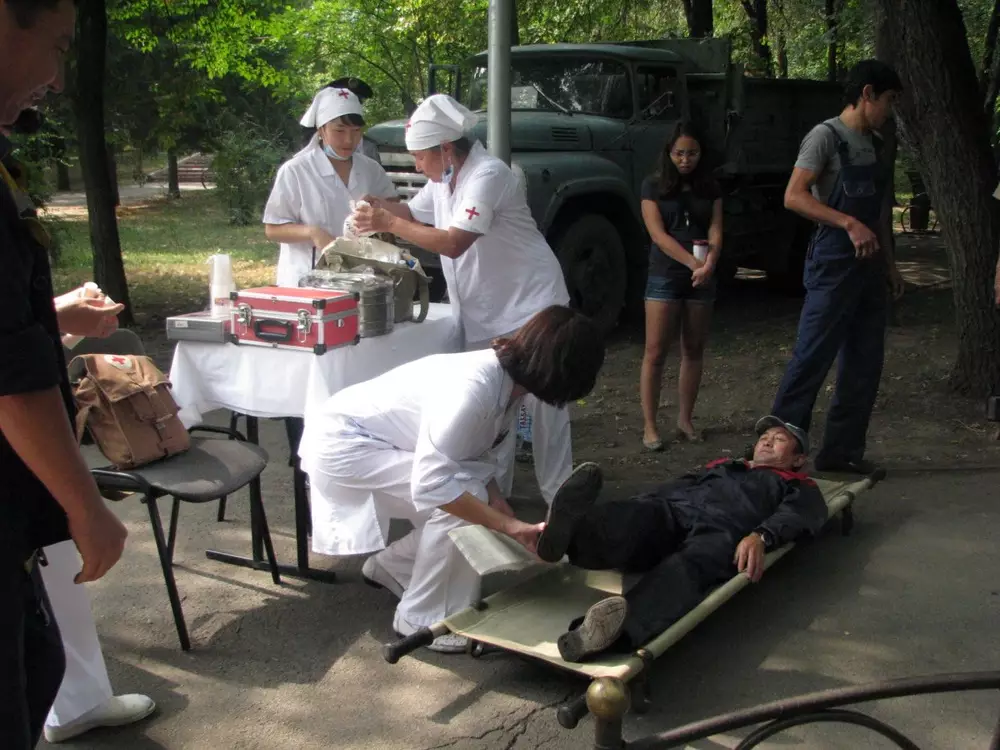 Сиренами, которые были слышны по всему городу, ровно в 10.00 началась общегородская тренировка. По первой тревоге к месту сбора населения при землетрясении, прикрепленному за гостиницей "Казахстан", из здания гостиницы были выведены 20 человек, находившиеся на первом и втором этаже здания. В сопровождении сотрудников службы ЧС люди колонной быстрым шагом направились в близлежащий парк по улице Зенкова.