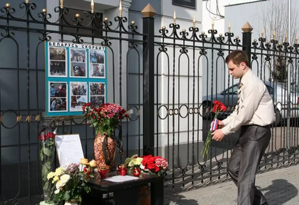 Казахстанцы соболезнуют белорусскому народу. 13 апреля, в день траура в Беларуси, многочисленные жители Астаны несут цветы к зданию посольства и оставляют записи в книге соболезнований, сообщает корреспондент Tengrinews.kz.