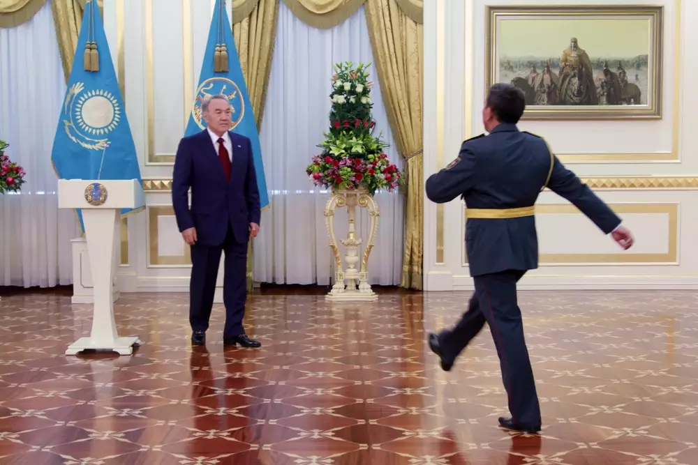 "Это является высшей оценкой вашего труда. Это большое, радостное событие. В то же время, я считаю, что вас воспитал независимый Казахстан. За эти годы вы прошли все ступени службы, выросли и достигли того, что получили высшее воинское звание - генерал. Генерал должен нести особую ответственность перед страной, перед солдатами, для которых вы являетесь отцами. Правоохранительная система, находясь на службе народа, тоже должна быть близка к людям, хранить свою честь и достоинство, а также достоинство и честь родины. Носить с большой гордостью эти звания и служить примером не только для младших офицеров - для всех солдат, граждан", - сказал Назарбаев, вручая генеральские погоны.