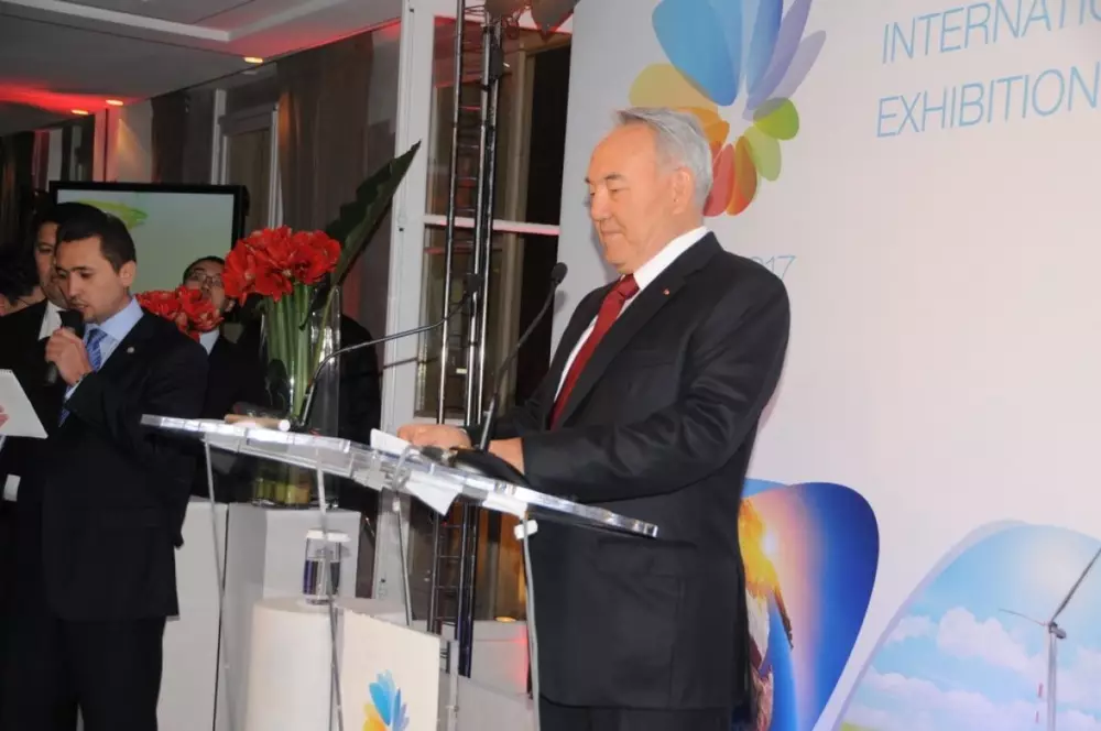 В павильоне "Габриэль" в Париже прошел прием Международного бюро выставок в честь страны, получившей право на проведение EXPO-2017, - в честь Казахстана, передает корреспондент Tengrinews.kz из столицы Франции. В начале вечера к собравшимся обратился Президент Казахстана Нурсултан Назарбаев. "Я хочу еще раз поблагодарить за решение провести выставку EXPO-2017 в нашей молодой столице. Я благодарен всем главам государств, правительств за поддержку нашей кандидатуры. Особую благодарность хочу выразить за честную конкурентную борьбу народу и руководству Бельгии и городу Льеж. Мы в полной мере осознаем историческую ответственность, которая на нас возложена. Впервые EXPO состоится в самом сердце огромного евразийского континента", - сказал Глава государства. Он заверил, что Казахстан приложит максимум усилий, чтобы выставка прошла на высочайшем уровне. "Мы учтем все ваши предложения, приложим все усилия, чтобы выставка прошла интересно", - отметил Назарбаев и пригласил всех желающих посетить Казахстан. Закончил свою речь Президент на английском языке. "Thank you for your support. It’s a great day for Kazakhstan", - сказал Нурсултан Назарбаев.