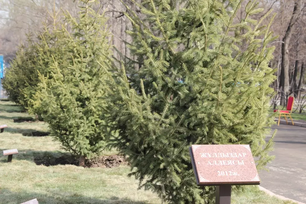За алматинским Дворцом Республики появилась аллея, где народные и заслуженные артисты СССР и Казахстана посадили именные ели, сообщает корреспондент Tengrinews.kz. В закладке "Звездной аллеи" приняли участие аким Алматы Ахметжан Есимов, а также артисты Бибигуль Тулегенова, Асанали Ашимов, Алибек Днишев, Рамазан Бапов, Анатолий Молодов и Роза Джаманова. Свои первые деревья на аллее посадили и молодые таланты Казахстана. Среди взявших в руки лопаты были группа Сакена Майгазиева "Парасат", оперный исполнитель Медет Чотабаев и "Мисс Азиада" Кумис Базарбаева. По словам оперного певца Алибека Днишева, если бы каждый из жителей Алматы посадил хоть один саженец, то в городе могло бы быть уже более миллиона деревьев. Между тем, 7 апреля в Алматы объявлен общегородской субботник по санитарной очистке улиц, дворовых территорий, мест общего пользования, арычной сети. В субботнике принимают участие общественные и молодежные объединения, юридические лица, студенты вузов.