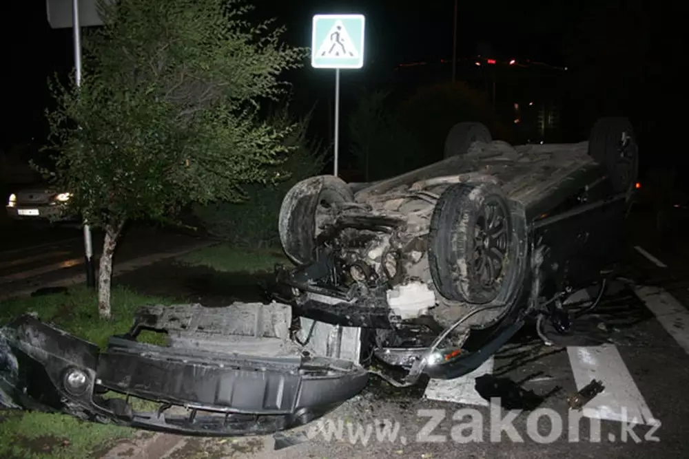 В результате "касательного столкновения" обе машины, ехавшие на высокой скорости, вылетели с дороги. Toyota въехала в бетонный забор, а Infiniti, врезавшись в дерево, перевернулась и проехала на крыше по инерции несколько десятков метров. В результате ДТП травмы средней степени тяжести получил водитель джипа. В настоящее время детали случившегося выясняют сотрудники УДП ДВД Алматы.