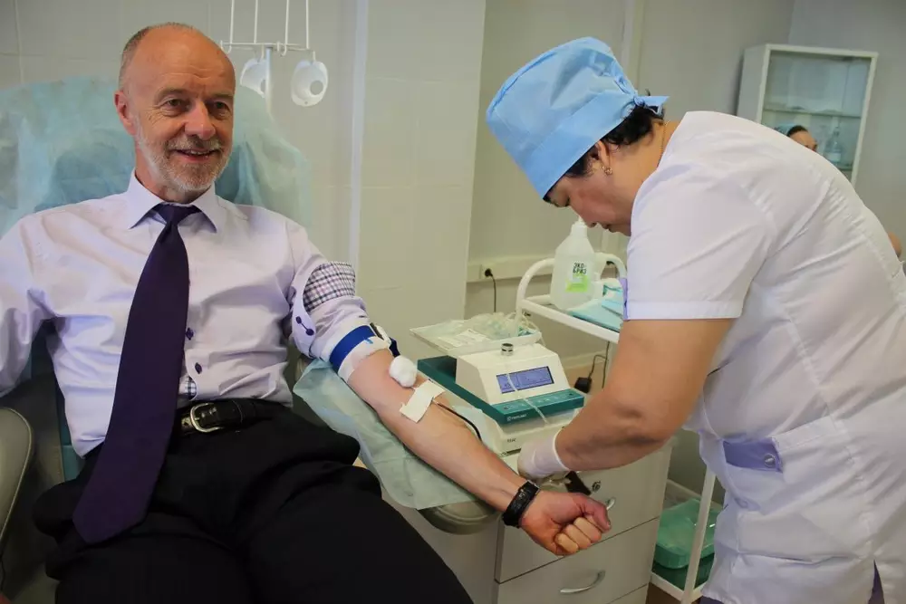 Вместе с представителями дипломатических миссий к добровольной сдаче крови присоединился депутат мажилиса парламента Казахстана Абай Тасбулатов: "Самое для меня удивительное и приятное, что за короткое время можно определить группу крови, больной - не больной. И самое главное, конечно же, это безопасность, потому что здесь новое современное оборудование, это очень важно для нас, чтобы люди не пугались и действительно сдавали кровь. В прошлом году я сдавал со своими гвардейцами. Я когда был командующим Национальной гвардии, для нас это было святое. Вы знаете, это уже стало привычкой, нормой для военных людей, которые носят погоны".