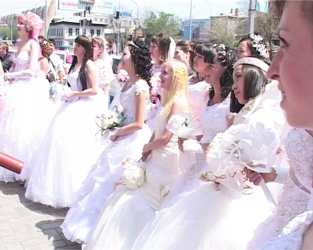 В Семее прошел парад невест, передает корреспондент Tengrinews.kz. Первый парад невест в городе состоялся в прошлом году, но на этот раз его решено было провести более масштабно. Почти сто девушек разных возрастов надели свадебные платья и прошлись по центральным улицам города. Участники демонстрировали свои белоснежные наряды и позировали фотографам. После невесты пересели на шикарные лимузины, а самые смелые предпочли мотоциклы. "Цель акции, пропаганда национальных, патриотических ценностей, а также укрепление института брака и семьи среди молодежи. Воспитание уважения к обычаям и обрядам многонационального Казахстана, несущим духовную и культурную ценность", - пояснили организаторы. Завершится парад праздничным концертом и дефиле невест на набережной Иртыша.