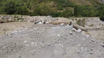 Напомним, в результате прохождения селевого потока 21 июля произошло забивание водопропускного сооружения бревноуловителя. В результате чего произошел размыв на правой стороне земляной дамбы. В 00:30 22 июля образовалась промоина длиной 5,5 метра, шириной три метра, глубиной 1,2 метра, объемом около 20 кубометров. Были эвакуированы 150 человек.