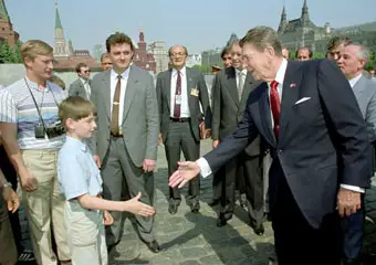 Снимок был сделан на Красной площади во время визита президента Рональда Рейгана в Москву. На фото слева от мальчика, протягивающего руку для пожатия с Рейганом, виден мужчина с фотоаппаратом. Соуза убежден, что это и есть переодетый в туриста агент КГБ Владимир Путин. По словам фотографа, тогда на площади туристы задавали слишком "политически грамотные вопросы", к примеру о состоянии прав человека в США.