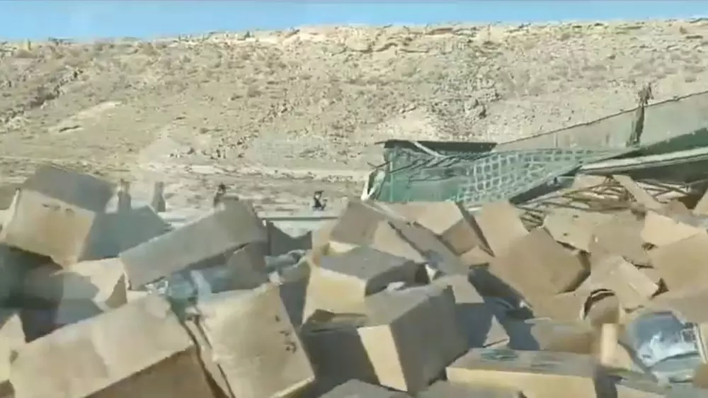 Фура опрокинулась на трассе Жетыбай - Актау Кадр из видео