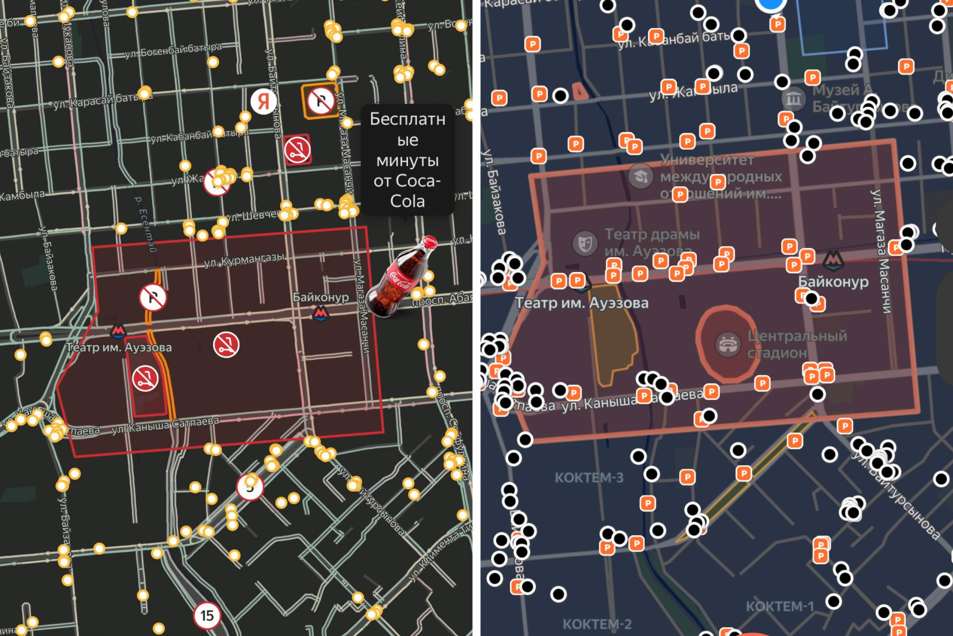 Согласно картам сразу нескольких сервисов проката самокатов, движение заблокировано в квадрате вокруг стадиона: