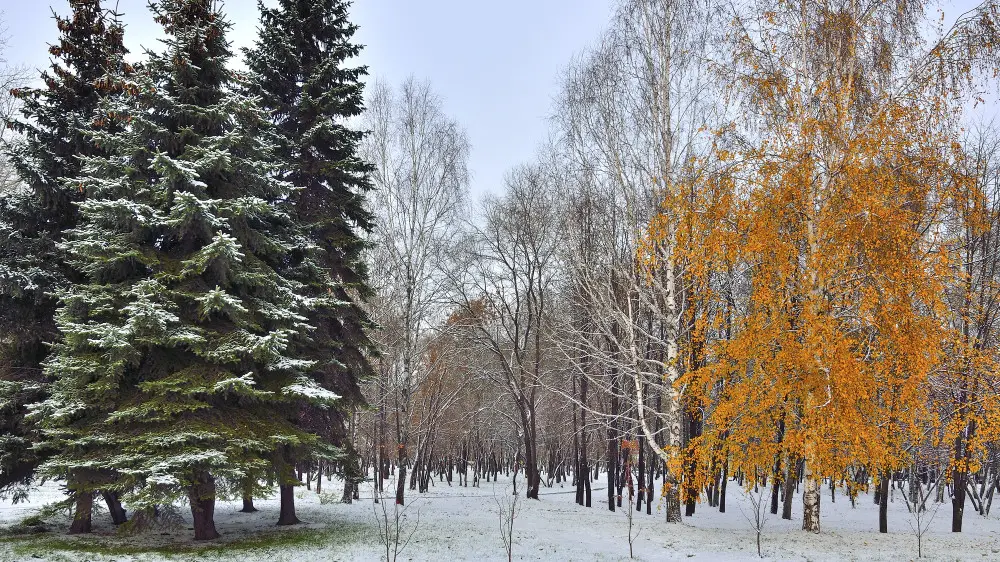 Местами прогнозируются дожди и снег, туман, грозы и заморозки.
