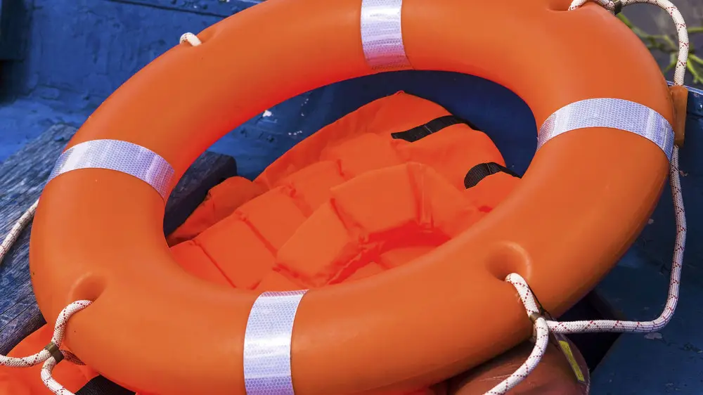 Поясняется, что люди удерживались на плаву благодаря спасательным жилетам.