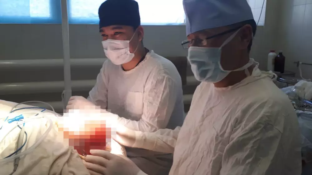 "В нашем случае у малыша опухоль достигала больших размеров - 20 на 20 сантиметров. Размер образования превышал массу и размер самого ребенка. Необходимо было провести экстренное вмешательство, так как опухоль сдавливала органы, в основном прямую кишку и уретру. В итоге происходило нарушение функций тазовых органов. Также была опасность разрыва опухоли, что могло привести к угрозе для жизни", - рассказал заведующий отделением гнойной торакальной хирургии Мырзахмет Саматбек.
