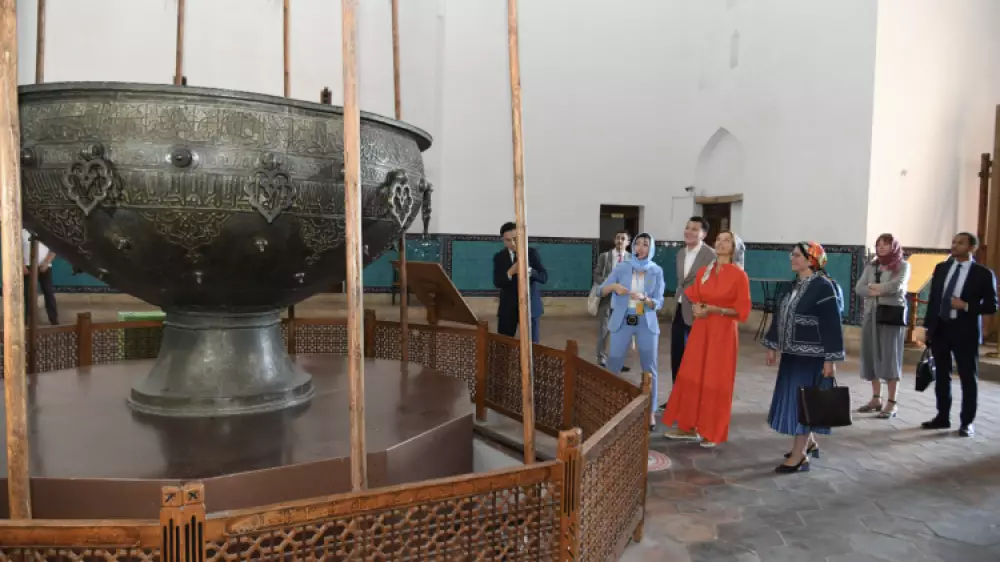 В рамках поездки Одрэ Азуле посетила Туркестан, где осмотрела мавзолей Ходжи Ахмеда Ясави, первый из казахстанских объектов, включенный в список всемирного наследия ЮНЕСКО.