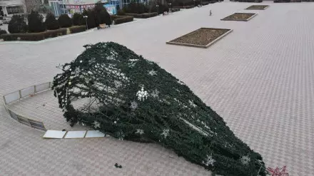 Елка упала на главной площади Актау из-за сильного ветра. Об упавшей в Актау елке на странице в Facebook рассказал блогер Азамат Сарсенбаев, передает Tengrinews.kz.