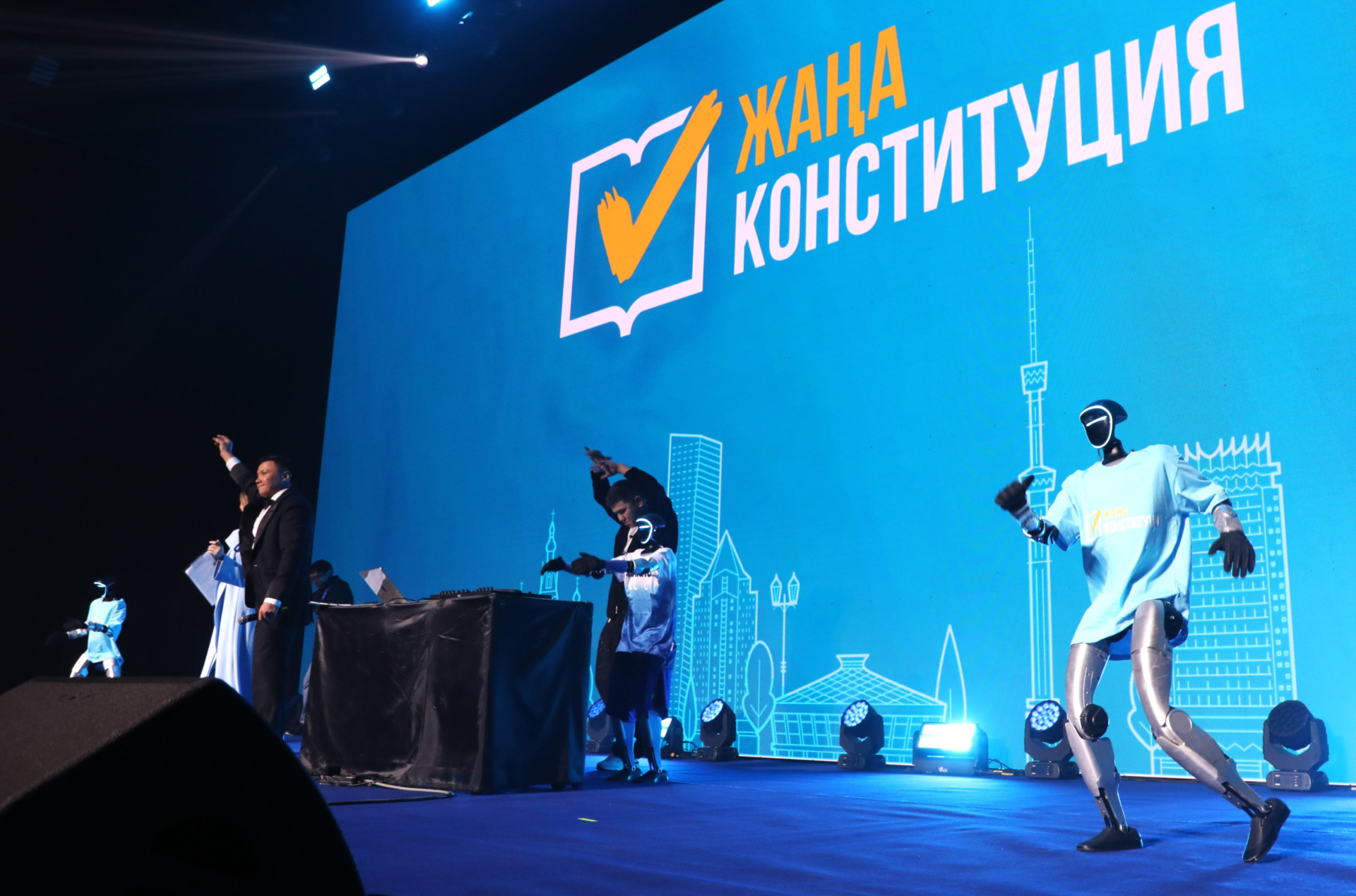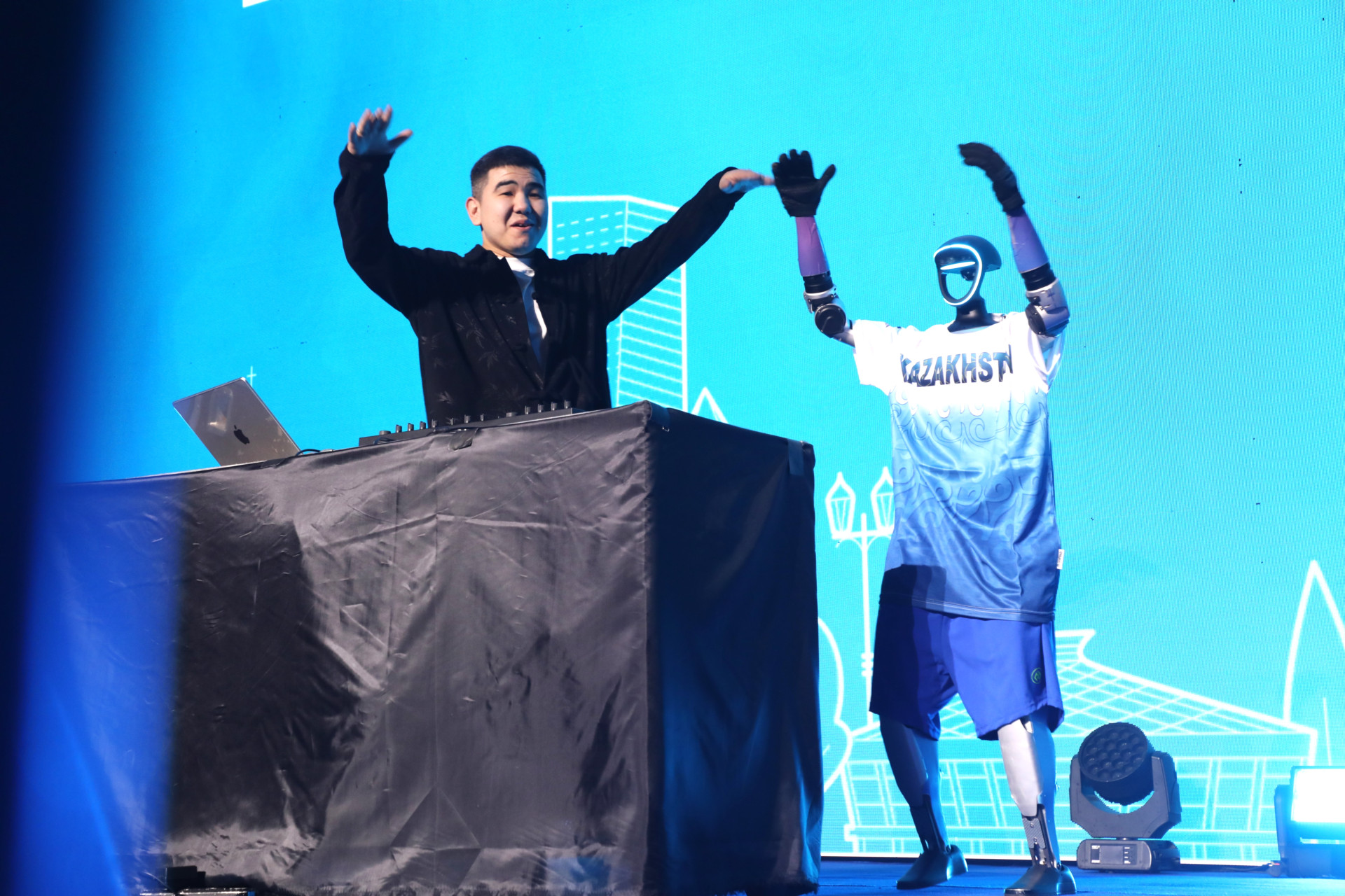 В ходе концерта ставший уже популярным алматинский барс Әділет устроил батл с участниками вечера. Robo-DJ по имени Темирбек профессионально микшировал современную музыку, создавая атмосферу драйва и поднимая настроение зрителям. Не менее ярким моментом стало появление танцующих роботов, которые не просто механически повторяли движения — они взаимодействовали с публикой, приветствовали гостей, реагировали на аплодисменты и создавали эффект "живого" цифрового присутствия.