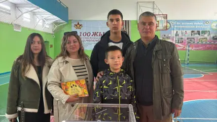 Семья Садвакасовых - известные призеры областного тура Республиканского конкурса "Мерейлі отбасы", пришли на участок голосования №99 вместе с детьми: Диасом, Анель и Султаном. В их семье существует хорошая традиция делать все сообща – они занимаются домашними делами, отдыхают и путешествуют вместе.