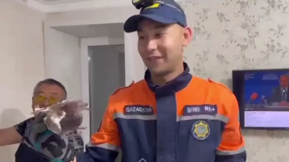 Ранее в МЧС показали кадры спасения котенка, застрявшего за облицовкой стены здания в Астане.