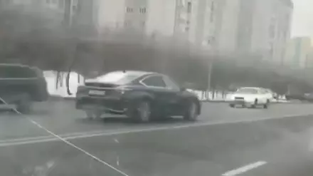 Видео появилось на странице kris_p_almaty. Очевидец написал, что ехал и "случайно заснял" нарушение. На кадрах видно, как иномарка движется по встречной полосе, плавно возвращаясь на свою полосу.