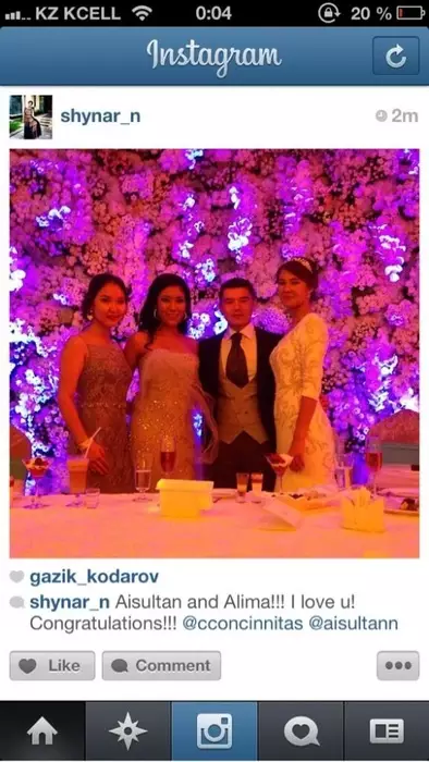 Гости свадьбы Айсултана Назарбаева постят фото Канье Уэста Молодожены с гостями. Фото: Instagram.com/shynar_n