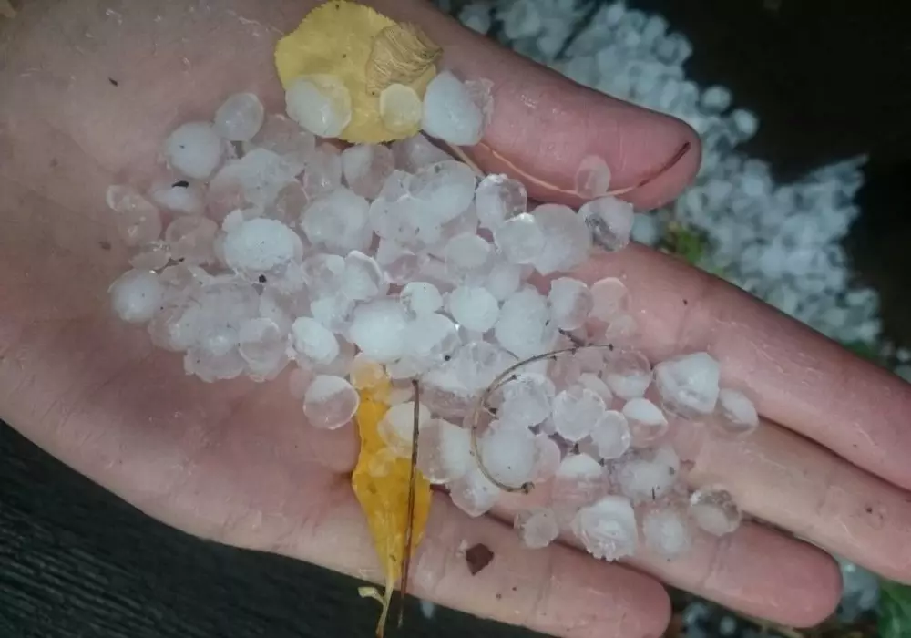Аномально большой град размером с крупную черешню прошел 13 июля в Шахтинске, сообщает корреспондент Tengrinews.kz.