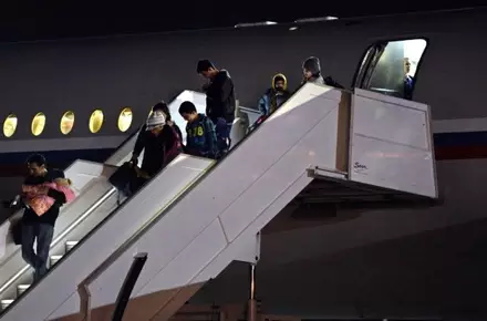 Граждане Казахстана эвакуированы из Йемена российскими самолетами Прибывшие из Йемена выходят из самолета. © РИА Новости