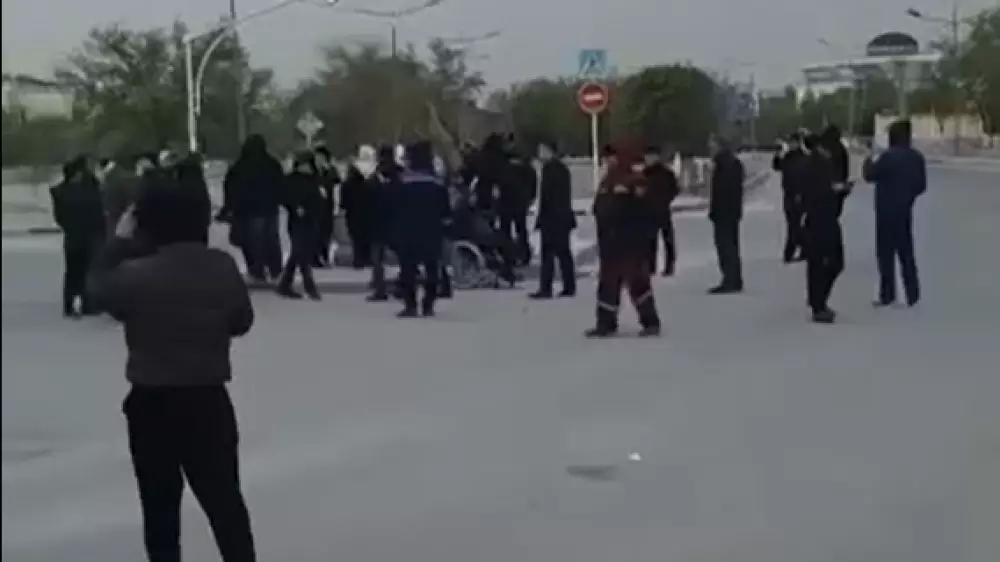 Группа граждан в Жанаозене перекрыла проезжую часть - полиция Кадр из видео