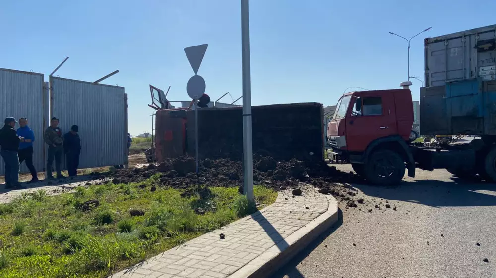 В Нур-Султане опрокинулся грузовой автомобиль. ДТП произошло на улице Жумекена Нажмиденова, передает корреспондент Tengrinews.kz.