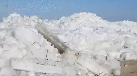 "Такого я никогда не видел. От ветра льдины навалило на дорогу. Даже столбы падают",  - говорит он за кадром.