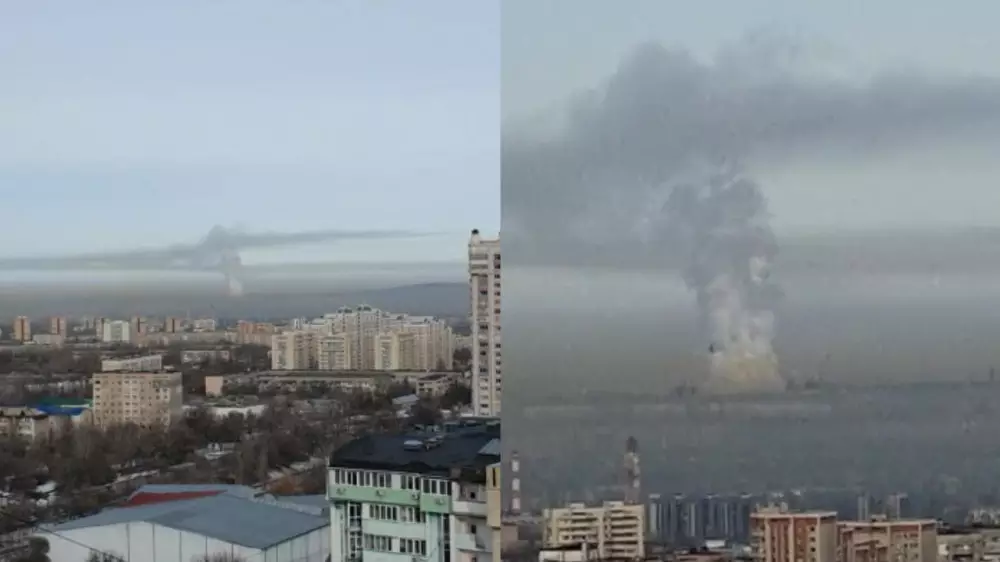 Алматинцы прислали видео необычного дыма над западной частью города. По их словам, он напоминает последствия взрыва. На кадрах видно, что дым идет со стороны ТЭЦ-2.