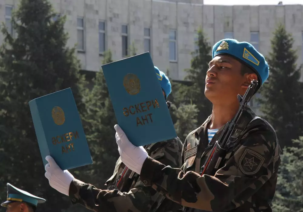 Поздравить призывников с принятием присяги пришли представители городского акимата, руководители воинских подразделений, а также родные и близкие новобранцев. Кроме того, на церемонии выступил Президентский оркестр. Начальник службы обороны объектов генерал-лейтенант Мухтар Аюбаев пожелал новобранцам быть верным присяге и с честью выполнить свой конституционный долг. Стоит отметить, что военная присяга - государственный документ, после принятия которого призывники берут на себя ответственность за безупречное несение службы.
